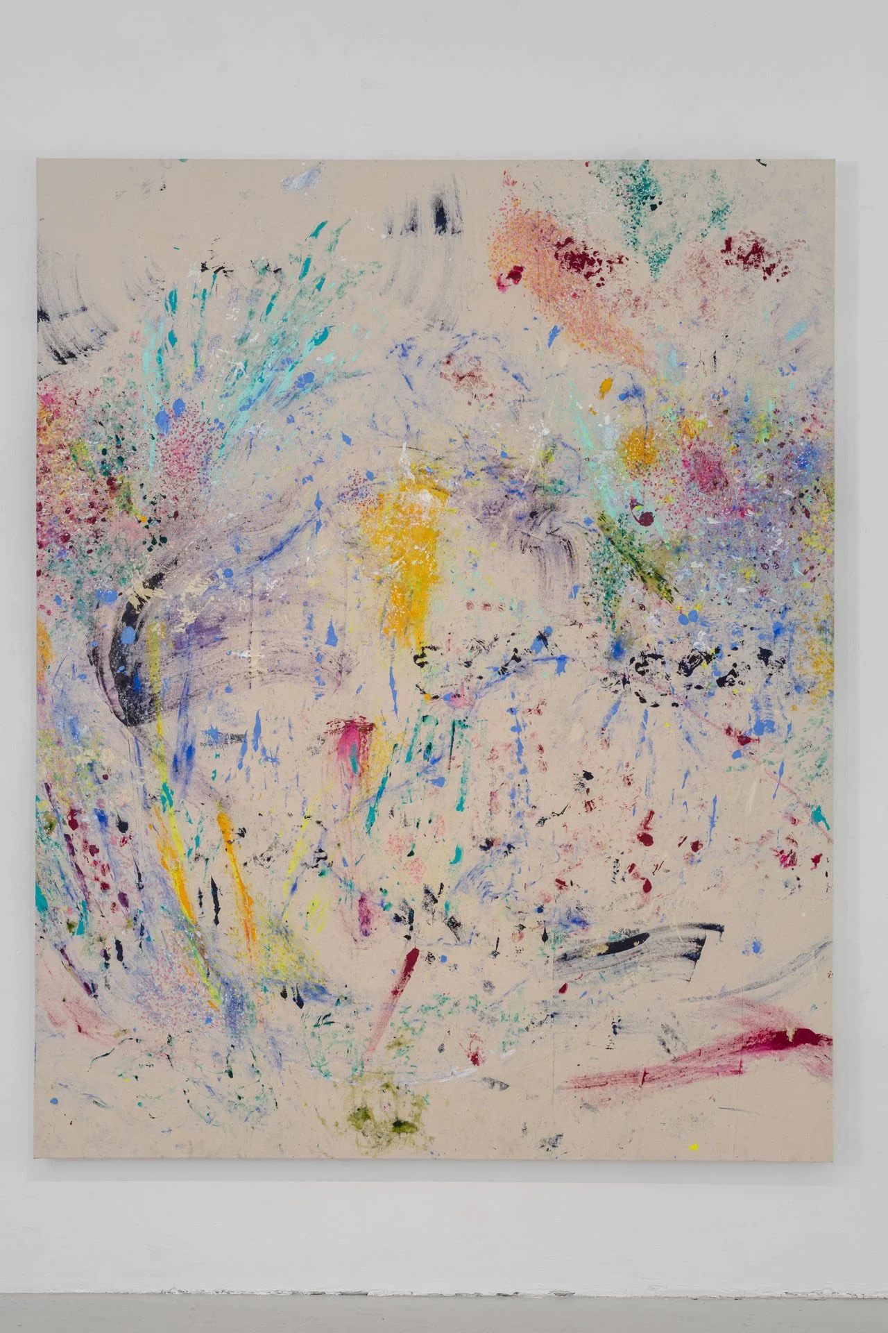 Acrylic, gesso, oil pastel, chalk pastel on unprimed canvas